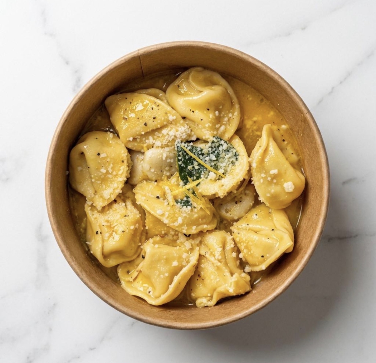 טורטליני תרד פולנטה, חמאה, שום, מרווה ולימון